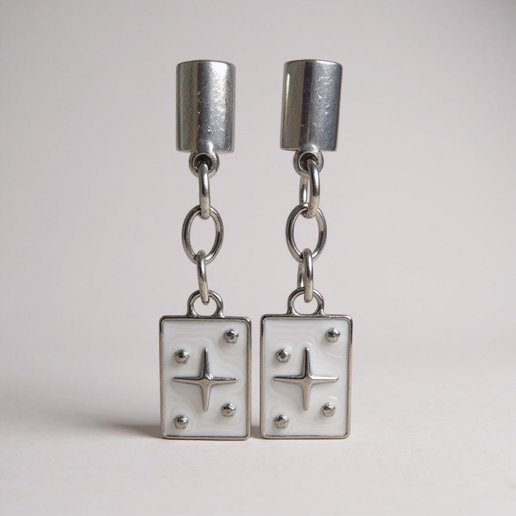 Brinco prateado com a carta da estrela pendurada na cor branca.