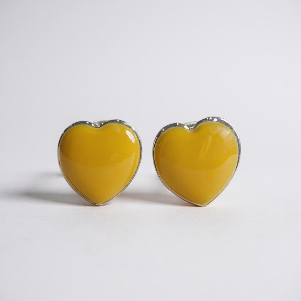 Brinco prateado em forma de coração pequeno da cor caramelo.