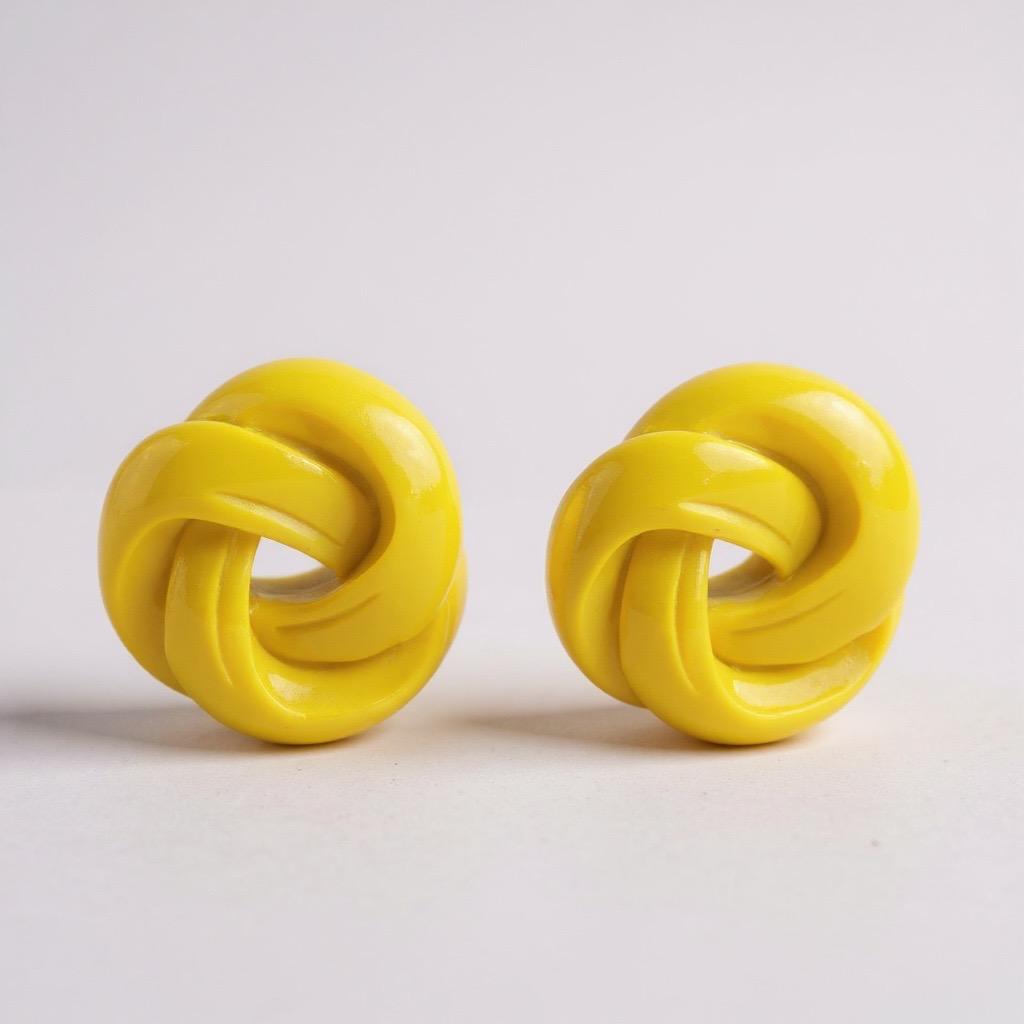 Brinco de resina entrelaçado na cor amarelo.