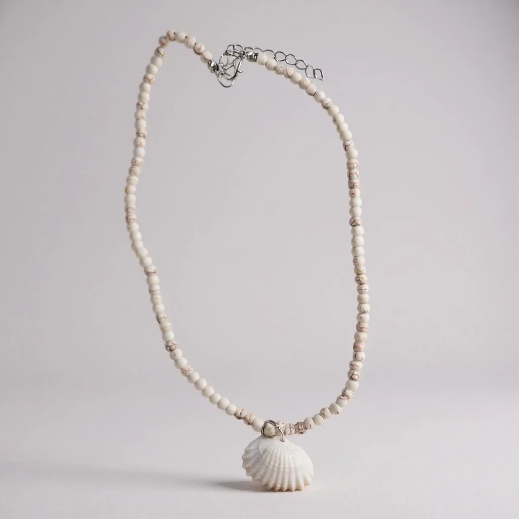 Colar de pedras na cor bege com pingente de concha.