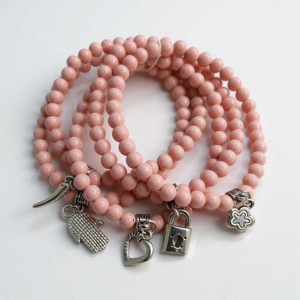 Kit com 5 pulseiras na cor rosa claro.