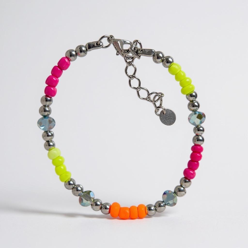 Pulseira de miçanga nas cores neons e cristal furtacor.