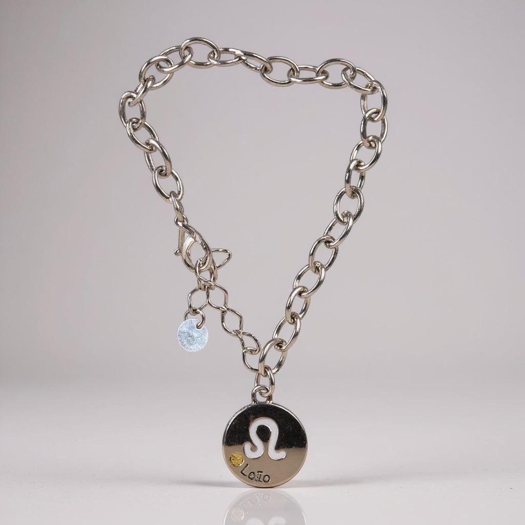 Pulseira corrente prateada com pingente do signo de leão.